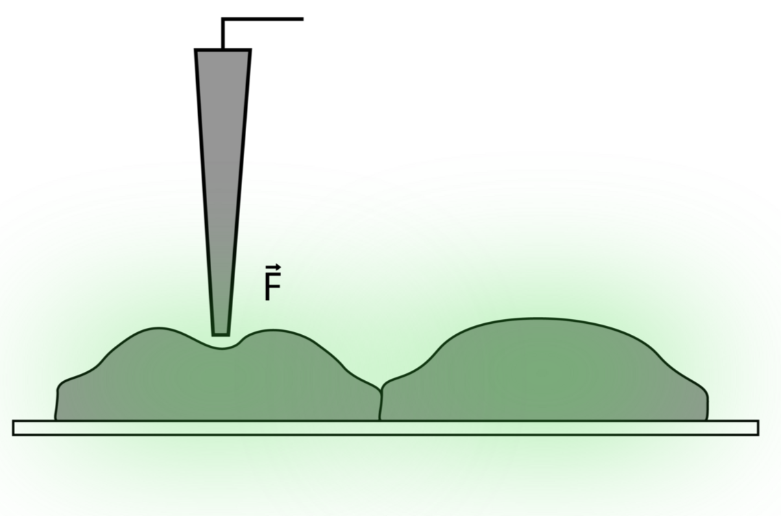 This novel method is based upon the deformation of a decane droplet to calculate the intrinsic force between the pipette tip and the sample surface. Decane droplets have well-known elastic properties and therefore the force exerted onto the cell surface by the pipette tip can be calculated. This force is then used to calculate the Young’s modulus for the sample surface.